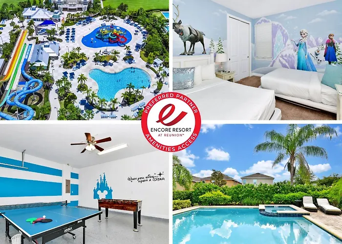 Die Familien-Lively Home With Ping Pong Table & Awesome Kid'S Rooms Near Disney By Encore Resort At Reunion By Rentyl - 670L befindet sich im Stadtviertel Celebration und verfügt über einen Außenpool mit einer Wasserrutsche.